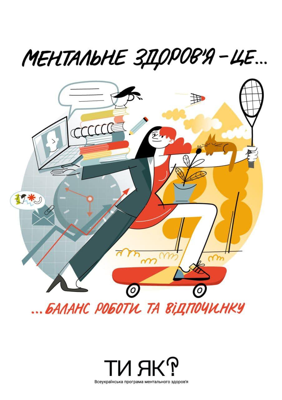 Усі віжуали можна вільно використовувати, адже вони створені для того, щоб якомога більше людей подбали про свій психологічний добробут. Їх можна завантажити на сторінці Всеукраїнської програми ментального здоров’я «Ти як»: https://www.howareu.com. Будь ласка, вказуйте авторство ілюстрацій і поширюйте знання про ментальне здоровʼя.