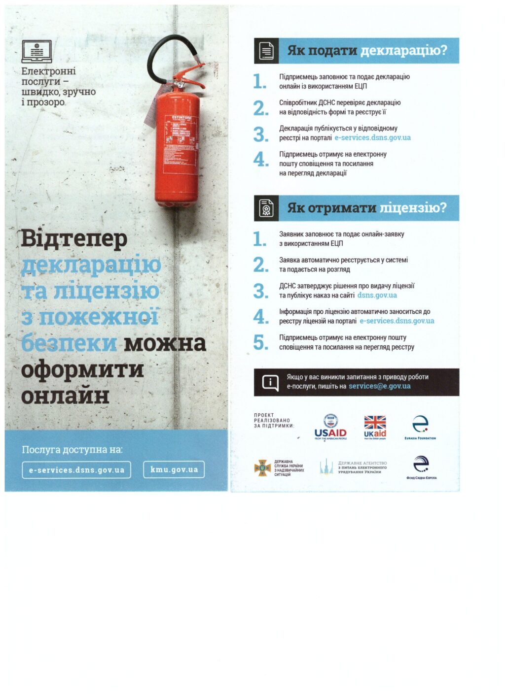 ГУ ДСНС України у Миколаївській області інформує про роботу Порталу електронних послуг ДСНС, скориставшись яким є можливість заповнення декларації відповідності матеріально-технічної бази вимогам законодавства з питань пожежної безпеки через Єдиний державний портал адміністративних послуг, зокрема через інтегровану з ним інформаційну систему ДСНС за посиланням https://e-services.dsns.gov.ua/ або портал «ДІЯ».