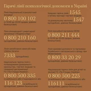 Бути справжнім героєм для самого себе – це звернутися по допомогу. Зберігайте і поширюйте важливі номери, за якими можна знайти підтримку. Зазначимо, що гарячі лінії діють за підтримки Всеукраїнської програми ментального здоров’я «Ти як?»