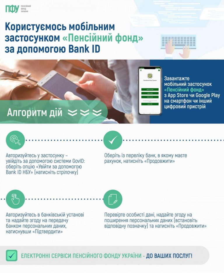 Якщо вам потрібен доступ до електронних сервісів «Пенсійного фонду» України у зручному форматі – користуйтесь мобільним застосунком «Пенсійний фонд».
