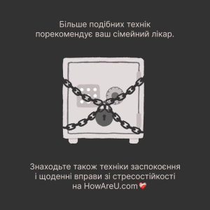 Також ділимося простою технікою «Сейф», яка може допомогти переключитися. Знайдіть тихе місце, закрийте очі та скористайтеся найнадійнішим сховищем у світі.