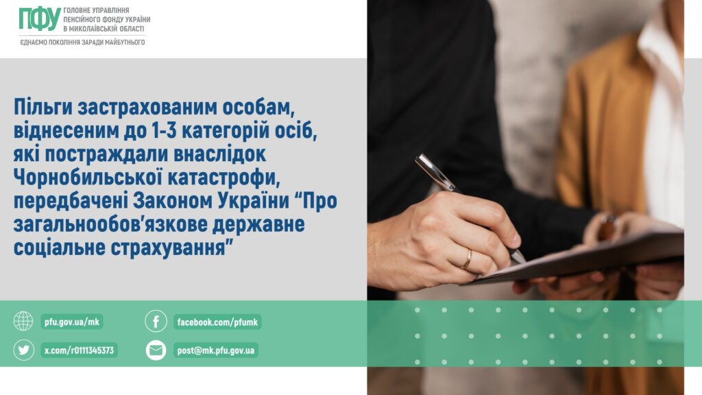 Пільги застрахованим особам, віднесеним до 1-3 категорій осіб, які постраждали внаслідок Чорнобильської катастрофи, передбачені Законом України “Про загальнообов’язкове державне соціальне страхування”