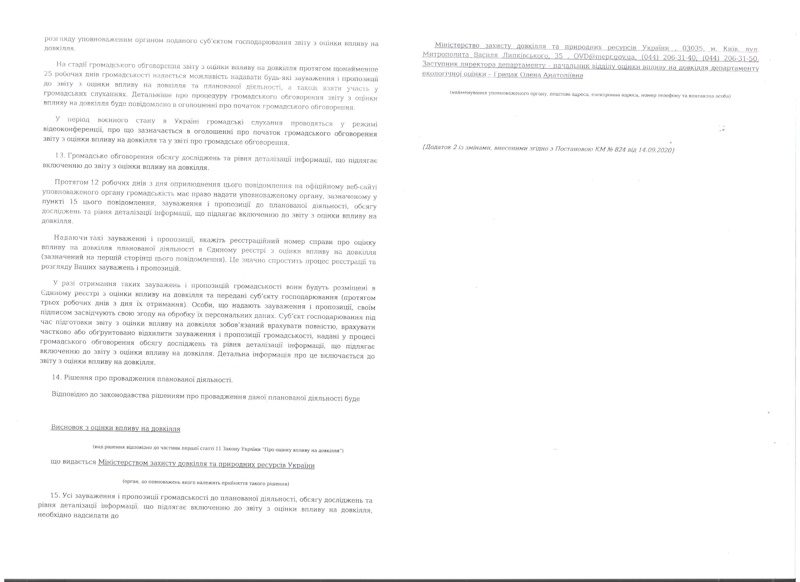 Повідомлення про плановану діяльність, яка підлягає оцінці впливу на довкілля