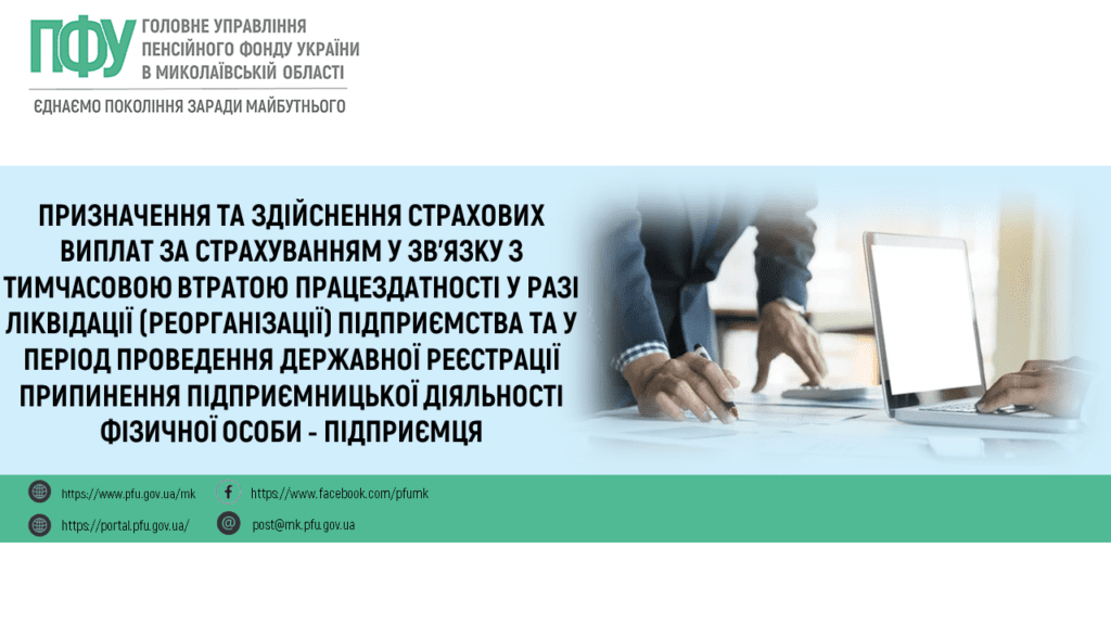 Призначення та здійснення страхових виплат за страхуванням у зв’язку з тимчасовою втратою працездатності у разі ліквідації (реорганізації) підприємства та у період проведення державної реєстрації припинення підприємницької діяльності фізичної особи – підприємця