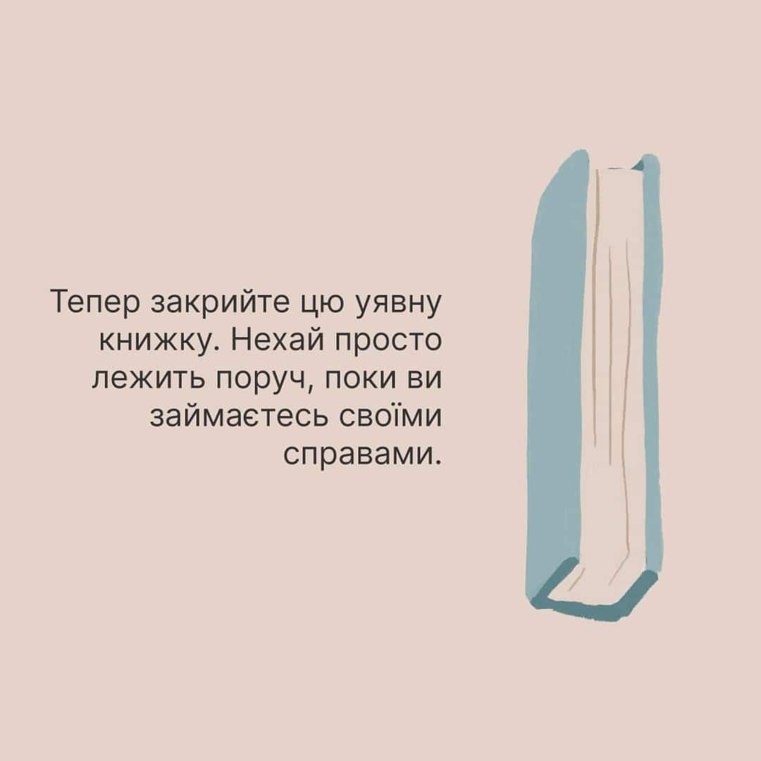 Ви також можете виділяти під тривогу конкретну годину на день, в яку «відкриваєте» цю книгу. А в інший час нехай просто лежить поряд