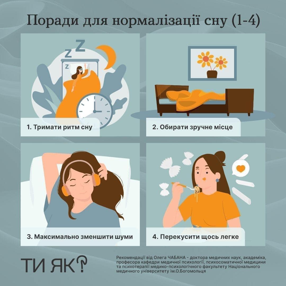 Норма сну – 7-8 годин. Якщо не вдалось виспатися вночі (сирени, вибухи), спробуйте «надолужувати» вдень.