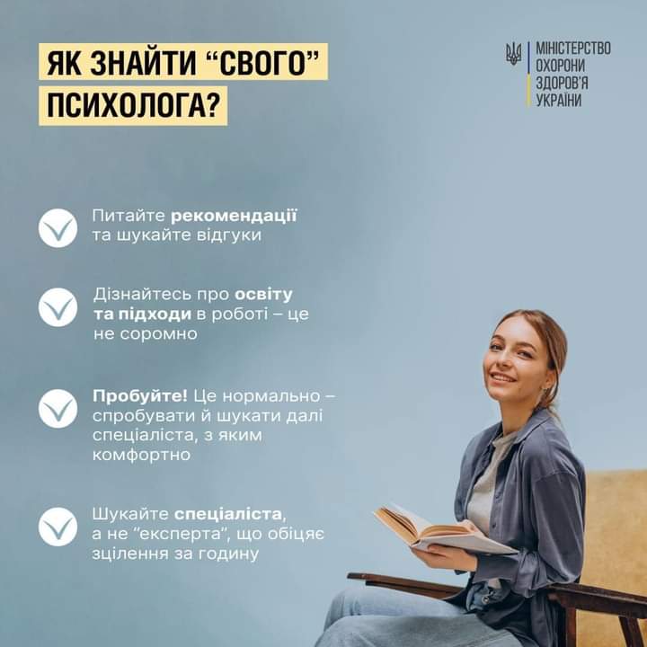 ⭐ Не бійтесь пробувати, ви можете не знайти контакт з першим же спеціалістом, і це нормально. Домовтесь про пробну зустріч і подумайте, чи було вам комфортно, а також чи прийнятним і корисним для вас було те, що говорив і обіцяв вам спеціаліст.