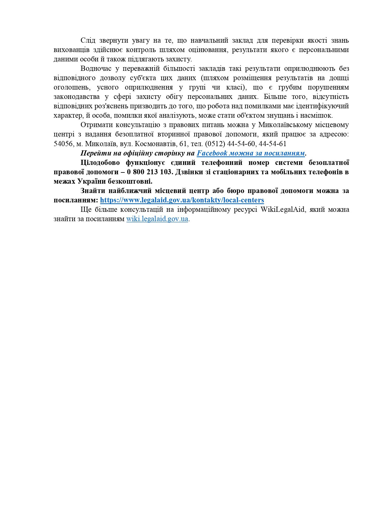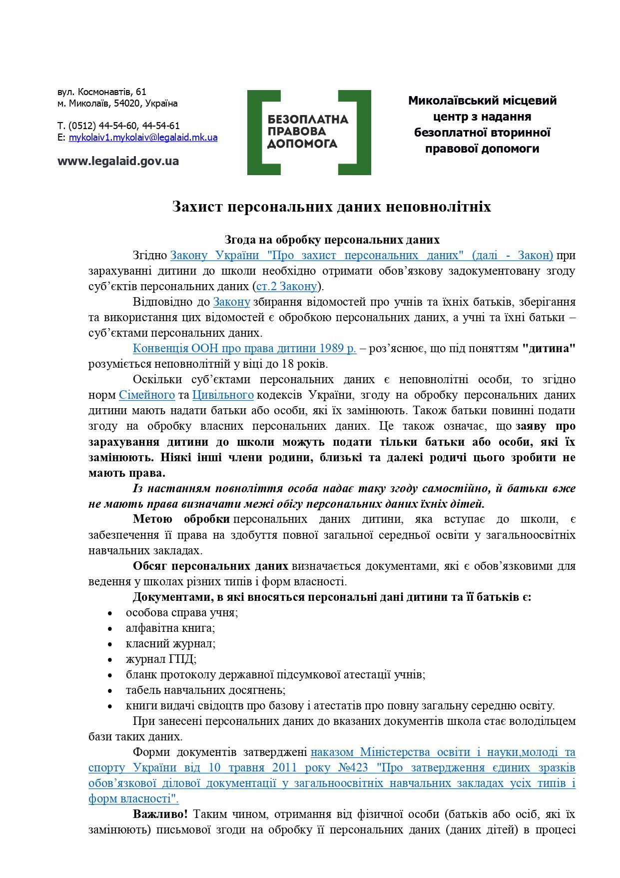 (0512) 68-84-21 (відділ загальної та організаційної роботи),